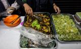 Relawan menunjukan menu makan gratis untuk berbuka puasa di kawasan Stasiun Bogor, Kota Bogor, Jawa Barat, Senin (25/3/2024). Lembaga kemanusiaan SalamAid menggelar program Warung Seribu Cinta spesial Ramadhan dengan membagikan sebanyak ratusan porsi makanan yang disajikan bagi para pekerja maupun masyarakat yang masih berada di jalanan saat waktu berbuka puasa. Berbagai hidangan mulai dari takjil, minuman hingga nasi beserta lauk pauknya dihidangkan secara gratis (FOTO : Republika/Putra M. Akbar)