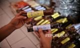 Pembeli memilah dodol betawi di Pondok Dodol Sari Rasa Ibu Yuyun di Jalan Damai Baru, Pasar Minggu, Jakarta Selatan, Selasa (26/3/2024). Pada bulan suci ramadhan, produksi dodol Betawi meningkat dari semula 2 wajan adonan per hari, kini mampu 16 wajan adonan per hari seiring dengan banyaknya jumlah permintaan untuk hari raya Idul Fitri. Dodol Betawi menjadi salah satu makanan khas saat lebaran. Dodol Betawi ini dibanderol dengan harga mulai Rp 25.000 sampai Rp 130.000 per kemasan tergantung ukuran. (FOTO : Republika/Thoudy Badai)
