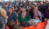 Sejumlah penumpang angkutan kapal laut tujuan Tanjung Priok, Jakarta menunggu keberangkatan di terminal keberangkatan Pelabuhan Batu Ampar, Batam, Kepulauan Riau, Rabu (27/3/2023). PT Pelni (Persero) Cabang Batam menyiapkan tiket mudik lebaran gratis sebanyak 1.172 lembar untuk kuota keberangkatan 27 Maret, 7 dan 13 April 2024 menggunakan KM Kelud kelas ekonomi rute Batam-Belawan, Sumatera Utara dan Batam-Tanjung Priok, Jakarta. (FOTO : ANTARA FOTO/Teguh Prihatna)