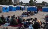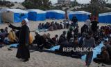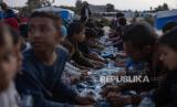 REPUBLIKA.CO.ID, GAZA. -- Pengungsi duduk bersama di samping tenda mereka untuk makan selama bulan suci Ramadhandi kamp Rafah di selatan Jalur Gaza, Rabu (27/3/2024).