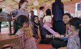 Mengibur dan mengajak bermain anak-anak sebagai upaya pemulihan mental..
