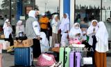 REPUBLIKA.CO.ID, BANYUWANGI -- Sejumlah santri asal Bali yang menjalani pendidikan di Pondok Pesantren Darussalam Blokagung, Banyuwangi, Jawa Timur, tiba di Terminal Mengwi, Badung, Bali, Kamis (28/3/2024).