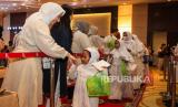 Sejumlah anak yatim menerima santunan saat acara buka puasa bersama di Jakarta, Kamis (28/3/2024). PT Adaro Energy Indonesia menggelar buka puasa bersama ribuan anak yatim dari 14 panti asuhan di Jabodetabek. Acara yang rutin setiap tahunnya dilakukan dan merupakan yang ke-12 kalinya ini bertemakan Segarkan Hati dengan Berbagi. (FOTO : Republika/Putra M. Akbar)