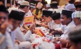 Sejumlah anak yatim saat menikmati hidangan buka puasa di Jakarta, Kamis (28/3/2024). PT Adaro Energy Indonesia menggelar buka puasa bersama ribuan anak yatim dari 14 panti asuhan di Jabodetabek. Acara yang rutin setiap tahunnya dilakukan dan merupakan yang ke-12 kalinya ini bertemakan Segarkan Hati dengan Berbagi. (FOTO : Republika/Putra M. Akbar)