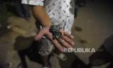 Seorang warga menunjukkan granat yang terlempar pascakebakaran gudang amunisi Yon Armed 7/105 GS Bantar Gebang di Cluster Kota Wisata Cibubur, Kabupaten Bogor, Jawa Barat, Sabtu (30/3/2024). Penyebab kebakaran gudang aminisi tersebut masih dalam penyelidikan pihak berwenang. (FOTO : ANTARA FOTO/ M Adimaja)
