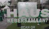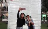 Pengunjung berswafoto saat peluncuran Es Batu Raksasa di Senayan Park Jakarta, Sabtu (30/3/2024). (FOTO : Dok.Republika)