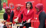 Pembina Foodbank of Indonesia - M. Hendro Utomo, MKT-R&D Director KHI - Felicia Julian, General Counsel and Head of Corporate & Regulatory Affairs - Mira Buanawati bersama Public Figure - Ussy Sulistiawaty tampak berinteraksi bersama relawan ibu dalam acara Peluncuran Gerakan ABC Dapur MasteRasa #Bagikankenikmatan, (14/3). (FOTO : Dok.Republika)