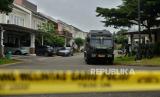 REPUBLIKA.CO.ID, BOGOR. -- Mobil Penjinak Bahan Peledak (Jihandak) Zeni TNI AD berada di komplek cluster Visalia, Perumahan Kota Wisata, Ciangsana, Gunung Putri, Kabupaten Bogor, Jawa Barat, Ahad (31/3/2024).