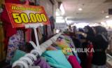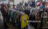 Warga memilih baju Lebaran di Pasar Tanah Abang, Jakarta, Senin (1/4/2024). Menurut pedagang, mendekati Hari Raya Idul Fitri 1445 Hijriah terdapat kenaikan omset tingga hingga empat kali lipat dibandingkan bulan-bulan biasa akibat ramainya masyarakat yang berbelanja baju baru Lebaran. (FOTO : Republika/Putra M. Akbar)
