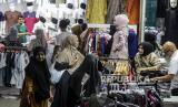 REPUBLIKA.CO.ID, JAKARTA -- Warga memilih baju Lebaran di Pasar Tanah Abang, Jakarta, Senin (1/4/2024). Menurut pedagang, mendekati Hari Raya Idul Fitri 1445 Hijriah terdapat kenaikan omzet hingga empat kali lipat dibandingkan bulan-bulan biasa akibat ramainya masyarakat yang berbelanja baju baru Lebaran.