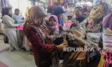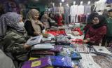 Warga memilih kerudung di Pasar Tanah Abang, Jakarta, Senin (1/4/2024). Menurut pedagang, mendekati Hari Raya Idul Fitri 1445 Hijriah terdapat kenaikan omset tingga hingga empat kali lipat dibandingkan bulan-bulan biasa akibat ramainya masyarakat yang berbelanja baju baru Lebaran. (FOTO : Republika/Putra M. Akbar)