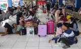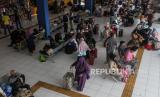 Calon penumpang menunggu jadwal keberangkatan bus di Terminal Kampung Rambutan, Jakarta, Selasa (2/4/2024). Terminal Kampung Rambutan mulai ramai oleh aktivitas pemudik yang akan pulang kampung halaman untuk merayakan Hari Raya Idul Fitri 1445 Hijriah. Pemudik yang berangkat dari Terminal tersebut didominasi oleh pemudik asal pulau Sumatera yang tiket keberangkatannya sudah habis terjual sekitar 90 persen. Diprediksikan puncak arus mudik dari Terminal Kampung Rambutan akan terjadi pada 7-8 April 2024. (FOTO : Republika/Putra M. Akbar)