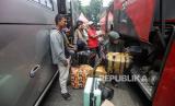 Calon penumpang menyimpan kardus ke dalam bagasi bus di Terminal Kampung Rambutan, Jakarta, Selasa (2/4/2024). Terminal Kampung Rambutan mulai ramai oleh aktivitas pemudik yang akan pulang kampung halaman untuk merayakan Hari Raya Idul Fitri 1445 Hijriah. Pemudik yang berangkat dari Terminal tersebut didominasi oleh pemudik asal pulau Sumatera yang tiket keberangkatannya sudah habis terjual sekitar 90 persen. Diprediksikan puncak arus mudik dari Terminal Kampung Rambutan akan terjadi pada 7-8 April 2024. (FOTO : Republika/Putra M. Akbar)