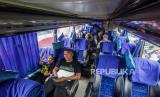 Calon penumpang duduk di dalam bus di Terminal Kampung Rambutan, Jakarta, Selasa (2/4/2024). Terminal Kampung Rambutan mulai ramai oleh aktivitas pemudik yang akan pulang kampung halaman untuk merayakan Hari Raya Idul Fitri 1445 Hijriah. Pemudik yang berangkat dari Terminal tersebut didominasi oleh pemudik asal pulau Sumatera yang tiket keberangkatannya sudah habis terjual sekitar 90 persen. Diprediksikan puncak arus mudik dari Terminal Kampung Rambutan akan terjadi pada 7-8 April 2024. (FOTO : Republika/Putra M. Akbar)