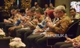 Direktur Utama (Dirut) Bank BJB Yuddy Renaldi, para pejabat daerah, dan para pemegang saham berdoa bersama saat Rapat Umum Pemegang saham Tahunan Tahun Buku 2023 di The Trans Luxury Hotel, Kota Bandung, Jawa Barat (Jabar), Selasa (2/4/2024). Dirut Bank BJB mengatakan, Bank BJB mencatatkan kinerja keuangan terjaga baik sepanjang tahun 2023. Berdasarkan laporan keuangan yang dipublikasikan, sepanjang 2023 Bank BJB mencatatkan laba sebesar Rp2,14 Triliun dengan Non Performing Loan (NPL) alias rasio kredit macet yang terjaga dengan baik pada level 1,35%. (FOTO : Edi Yusuf/Republika)