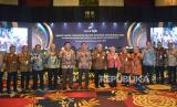 Direktur Utama (Dirut) Bank BJB Yuddy Renaldi berfoto bersama dengan jajaran direksi usai Rapat Umum Pemegang Saham Tahunan (RUPST) Tahun Buku 2023 di The Trans Luxury Hotel, Kota Bandung, Jawa Barat, Selasa (2/4/2024). Dirut Bank BJB mengatakan, Bank BJB mencatatkan kinerja keuangan terjaga baik sepanjang tahun 2023. Berdasarkan laporan keuangan yang dipublikasikan, sepanjang 2023 Bank BJB mencatatkan laba sebesar Rp2,14 Triliun dengan Non Performing Loan (NPL) alias rasio kredit macet yang terjaga dengan baik pada level 1,35%. (FOTO : Edi Yusuf/Republika)