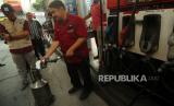 Petugas bersiap melakukan uji tera isi bahan bakar minyak (BBM) saat pengawasan di stasiun pengisian bahan bakar umum (SPBU) Pacifik jalur Pantura, Tegal, Jawa Tengah, Selasa (2/4/2024). Pengawasan dispenser mesin BBM dan tera ulang SPBU oleh Dinas Metrologi Kota Tegal sebagai upaya memastikan ketepatan takaran guna melindungi masyarakat dari praktik kecurangan SPBU menjelang arus mudik lebaran. (FOTO : ANTARA FOTO/Oky Lukmansyah)