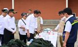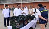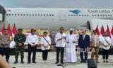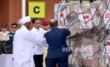 Presiden Jokowi saat melepas bantuan kemanusiaan untuk Palestina dan Sudan di Pangkalan TNI AU Halim Perdanakusuma, Jakarta, Rabu (3/4/2024). Pemerintah Indonesia memberikan bantuan kemanusiaan berupa obat-obatan, peralatan medis, antibakteri, dan makanan nutrisi dengan jumlah total senilai satu juta dolar AS untuk warga Palestina dan Sudan yang dilanda krisis. (FOTO : Republika/Dessy Suciati Saputri)