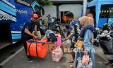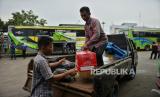 Pemudik membawa barangnya di Terminal Tanjung Priok, Jakarta Utara, Rabu (3/4/2024). Seminggu menjelang hari raya Idul Fitri 1445 Hijriah, jumlah penumpang di Terminal Tanjung Priok berangsur naik hingga 30 persen dari hari biasanya dengan rata-rata tujuan akhir ke Jawa Tengah dan Jawa Timur. Pemudik mengaku memilih berangkat mudik lebih awal lantaran menghindari harga tiket bus yang berangsur naik. Sementara Pemerintah melalui Kementerian Perhubungan memprediksi jumlah pemudik tahun ini mencapai 193,6 juta orang atau mengalami kenaikan hingga 60 persen dari tahun lalu yang berjumlah 123,8 juta orang pemudik. Kemudian, untuk puncak arus mudik Lebaran 2024 diprediksi akan terjadi pada tanggal 5-7 April mendatang. (FOTO : Republika/Thoudy Badai)