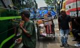 Pengemudi becak membawa barang milik pemudik saat akan dimasukan ke dalam bagasi bus di Terminal Tanjung Priok, Jakarta Utara, Rabu (3/4/2024). Seminggu menjelang hari raya Idul Fitri 1445 Hijriah, jumlah penumpang di Terminal Tanjung Priok berangsur naik hingga 30 persen dari hari biasanya dengan rata-rata tujuan akhir ke Jawa Tengah dan Jawa Timur. Pemudik mengaku memilih berangkat mudik lebih awal lantaran menghindari harga tiket bus yang berangsur naik. Sementara Pemerintah melalui Kementerian Perhubungan memprediksi jumlah pemudik tahun ini mencapai 193,6 juta orang atau mengalami kenaikan hingga 60 persen dari tahun lalu yang berjumlah 123,8 juta orang pemudik. Kemudian, untuk puncak arus mudik Lebaran 2024 diprediksi akan terjadi pada tanggal 5-7 April mendatang. (FOTO : Republika/Thoudy Badai)