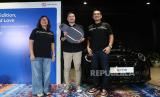 Head of Cards and Loan UOB Indonesia Herman Soesetyo (kiri) melihat mobil MINI PS Bespoke Edition bersama Operational General Manager PT Plaza Auto Raya Arie Herawan (Kanan) dan Victor Indrawan (tengah) selaku pemenang Lucky Draw yang merupakan loyalty programme UOB, saat acara Talkshow dan Pengumuman Pemenang di Plaza MINI, Jakarta, Rabu (3/4/2024). (FOTO : Dok.Republika)