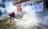 Petugas melakukan pengasapan atau fogging di SDN Pasar Minggu 03, Jakarta Selatan, Kamis (4/4/2024). Suku Dinas Kesehatan Jakarta Selatan melakukan pengasapan serentak pada 20 sekolah di wilayahnya untuk memberantas nyamuk Aedes Aegypti guna mencegah penyebaran penyakit Demam Berdarah Dengue (DBD). (FOTO : ANTARAFOTO/ Erlangga Bregas Prakoso)