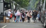 Peserta mudik bersiap naik bis pada program mudik gratis bertajuk Mudik Asyik Bersama BUMN 2024 di depan Gedung Sate, Jalan Diponegoro Kota Bandung, Jawa Barat, Jumat (5/4/2024). Industri Pertahanan Defend ID kembali mengadakan mudik gratis bersama Kementerian Badan Usaha Milik Negara (BUMN), kali ini menyediakan lima rute perjalanan yaitu Surabaya, Solo, Yogyakarta, Semarang, dan Palembang. (FOTO : Edi Yusuf/Republika)