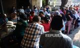REPUBLIKA.CO.ID, JOMBANG -- Warga antre mendapatkan sembako saat pembagian sedekah di rumah pengusaha keturunan Tionghoa Desa Kaliwungu, Kabupaten Jombang, Jawa Timur, Jumat (5/4/2024).