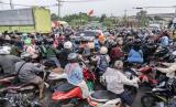 REPUBLIKA.CO.ID, BEKASI -- Sejumlah pengendara sepeda motor terjebak kemacetan di jalan Inspeksi Kalimalang, Bekasi, Jawa Barat, Jumat (5/4/2024).