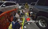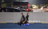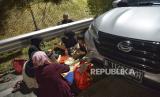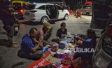 REPUBLIKA.CO.ID, CIKAMPEKS. -- Sejumlah pemudik menikmati makan sahur di bahu jalan tol di kawasan Gerbang Tol Cikampek Utama, Jawa Barat, Sabtu (6/4/2024) dini hari.
