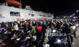 REPUBLIKA.CO.ID,Sejumlah pemudik motor menunggu antrean untuk menaiki kapal di Pelabuhan Ciwandan, Cilegon, Banten, Sabtu (6/4/2024).