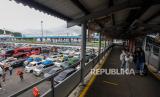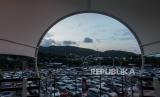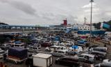 Sejumlah mobil pemudik menunggu antrean untuk menaiki kapal ferry di Pelabuhan Merak, Banten, Sabtu (6/4/2024). Empat hari jelang perayaan Idul Fitri 1445 Hijriah, Pelabuhan Merak mulai ramai didatangi pemudik yang akan menyeberang ke Pelabuhan Bakauheni, Lampung. Diprediksikan puncak arus mudik di Pelabuhan Merak akan terjadi hingga Ahad (7/4/2024). (FOTO : Republika/Putra M. Akbar)