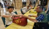 Jamaah membayar zakat fitrah di Masjid Istiqlal, Jakarta, Sabtu (6/4/2024). Unit Pengumpul Zakat (UPZ) Baznas Masjid Istiqlal membuka layanan pembayaran zakat fitrah berupa 3,5 liter beras atau uang senilai Rp50.000 yang berlangsung hingga malam takbiran. (FOTO : Republika/Thoudy Badai)