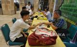 Petugas melakukan akad saat menerima zakat fitrah dari jamaah yang di Masjid Istiqlal, Jakarta, Sabtu (6/4/2024). Unit Pengumpul Zakat (UPZ) Baznas Masjid Istiqlal membuka layanan pembayaran zakat fitrah berupa 3,5 liter beras atau uang senilai Rp50.000 yang berlangsung hingga malam takbiran. (FOTO : Republika/Thoudy Badai)
