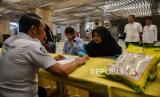 Petugas melayani jamaah yang membayar zakat fitrah di Masjid Istiqlal, Jakarta, Sabtu (6/4/2024). Unit Pengumpul Zakat (UPZ) Baznas Masjid Istiqlal membuka layanan pembayaran zakat fitrah berupa 3,5 liter beras atau uang senilai Rp50.000 yang berlangsung hingga malam takbiran. (FOTO : Republika/Thoudy Badai)