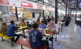 REPUBLIKA.CO.ID, SUBANG. -- Pemudik menyantap hidangan berbuka puasa di rest area KM 102 Cipali, Subang, Jawa Barat, Sabtu (6/4/2024).