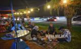 Pemudik menyantap hidangan berbuka puasa di rest area KM 102 Cipali, Subang, Jawa Barat, Sabtu (6/4/2024). Pada musim mudik, rest area di sepanjang jalan tol Trans Jawa menjadi tempat favorit pemudik untuk berbuka puasa dan istirahat sejenak. Untuk mengantisipasi kepadatan kendaraan selama masa mudik 2024, para pemudik dihimbau untuk beristirahat maksimal 30 menit rest area. (FOTO : Republika/Prayogi)