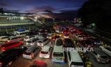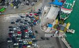 Sejumlah kendaraan pemudik mengatre untuk memasuki kapal Ferry di Pelabuhan Merak, Cilegon, Banten, Sabtu (6/4/2024). Penjualan tiket kapal Ferry hingga 8 April 2024 sudah habis terjual pada puncak arus mudik Lebaran 2024. (FOTO : Republika/Putra M. Akbar)