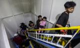 Sejumlah pemudik menaiki tangga di dalam kapal Ferry di Pelabuhan Merak, Cilegon, Banten, Sabtu (6/4/2024). Penjualan tiket kapal Ferry hingga 8 April 2024 sudah habis terjual pada puncak arus mudik Lebaran 2024. (FOTO : Republika/Putra M. Akbar)