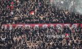 Pendukung AC Milan bersorak saat pertandingan sepak bola Serie A antara AC Milan dan Lecce di stadion San Siro, di Milan, Italia, (6/4/2024). (FOTO : AP Photo/Antonio Calanni)