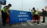 Prajurit TNI dan personel kepolisian menutup akses masuk gerbang tol Tegal, Adiwerna, Kabupaten Tegal, Jawa Tengah, Sabtu (6/4/2024). Pada H-4 lebaran Polres Tegal dan pihak tol Pejagan-Pemalang menutup akses masuk tol ke arah Jakarta karena pemberlakuan jalur satu arah atau (FOTO : ANTARA FOTO/Oky Lukmansyah)