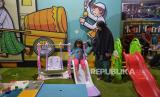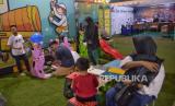 Anak-anak bermain di tempat bermain anak yang berada di pos tepadu Polres Subang di rest area KM 102 Cipali, Subang, Jawa Barat, Sabtu (6/4/2024). Area bermain tersebut disediakan untuk pemudik yang memiliki anak-anak sehingga diharapkan para pemudik khusunya pengemudi dapat beristirahat dengan optimal untuk kemudian melanjutkan perjalanannya. (FOTO : Republika/Prayogi)