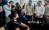 REPUBLIKA.CO.ID, CILEGON -- Menteri Koordinator Bidang Pembangunan Manusia dan Kebudayaan (Menko PMK) Muhadjir Effendy bersama Menteri Perhubungan (Menhub) Budi Karya Sumadi berbincang dengan pemudik saat meninjau Pelabuhan Merak, Cilegon, Banten, Ahad (7/4/2024).