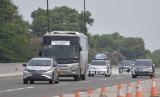 Pada H-2 Lebaran 2024 arus kendaraan yang melintas di gerbang tol Cikampek Utama terpantau ramai lancar.