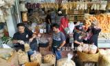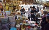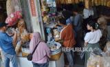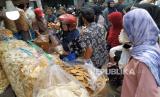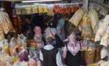 Jelang Lebaran, toko makanan kering dan aneka cemilan khas Bandung ramai pengunjung di area pintu masuk Pasar Kosambi, Kota Bandung, Jawa Barat, Senin (8/4/2024). Selain untuk dinikmati bersama keluarga di hari raya, banyak juga pengunjung yang datang berbelanja untuk oleh-oleh saat pulang kampung. (FOTO : Edi Yusuf/Republika)