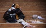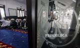 Jamaah Tarekat Naqsabandiyah Al Kholidiyah Jalaliyah mendengarkan ceramah saat melaksanakan sholat Idul Fitri di Masjid Rumah Suluk Darussalam, Cigombong, Kabupaten Bogor, Jawa Barat, Selasa (9/4/2024). Rumah Suluk Darussalam yang merupakan pusat Tarekat Naqsabandiyah se-Pulau Jawa tersebut menggelar sholat Idul Fitri 1 Syawal 1445 Hijriah berdasarkan hasil penghitungan pergantian bulan menggunakan metode hisab qomariah yang telah digunakan secara turun temurun. (FOTO : Republika/Putra M. Akbar)