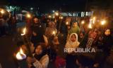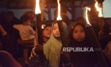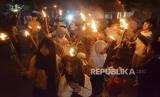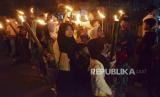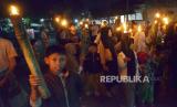 Puluhan anak-anak dan remaja melakukan takbiran sambil pawai obor menyambut Idul Fitri 1445 H di Komplek BTN Pusdikajen, Kayuambon, Kecamatan Lembang, Kabupaten Bandung Barat, Jawa Barat, Selasa (9/4/2024). Dari sidang isbat penetapan Idul Fitri 2024, pemerintah telah resmi menetapkan 1 Syawal 1445 H atau hari Raya Idul Fitri jatuh pada tanggal 10 April 2024. (FOTO : Edi Yusuf/Republika)