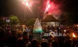 REPUBLIKA.CO.ID, SOLO. -- Warga berebut gunungan seusai Pawai Obor Takbir Keliling di kawasan Pura Mangkunegaran, Solo, Jawa Tengah, Selasa (9/4/2024).