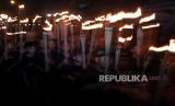 REPUBLIKA.CO.ID, DENPASAR. -- Pawai obor saat Gema Takbir Keliling menyambut Idul Fitri 1 Syawal 1445 H di Kampung Islam Kepaon, Denpasar, Bali, Selasa (9/4/2024).
