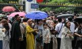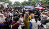 REPUBLIKA.CO.ID, JAKARTA. -- Sejumlah mengantre untuk menghadiri open house yang diselenggarakan Presiden Joko Widodo di depan Kantor Kementerian Sekretariat Negara, Jakarta, Rabu (10/4/2024).